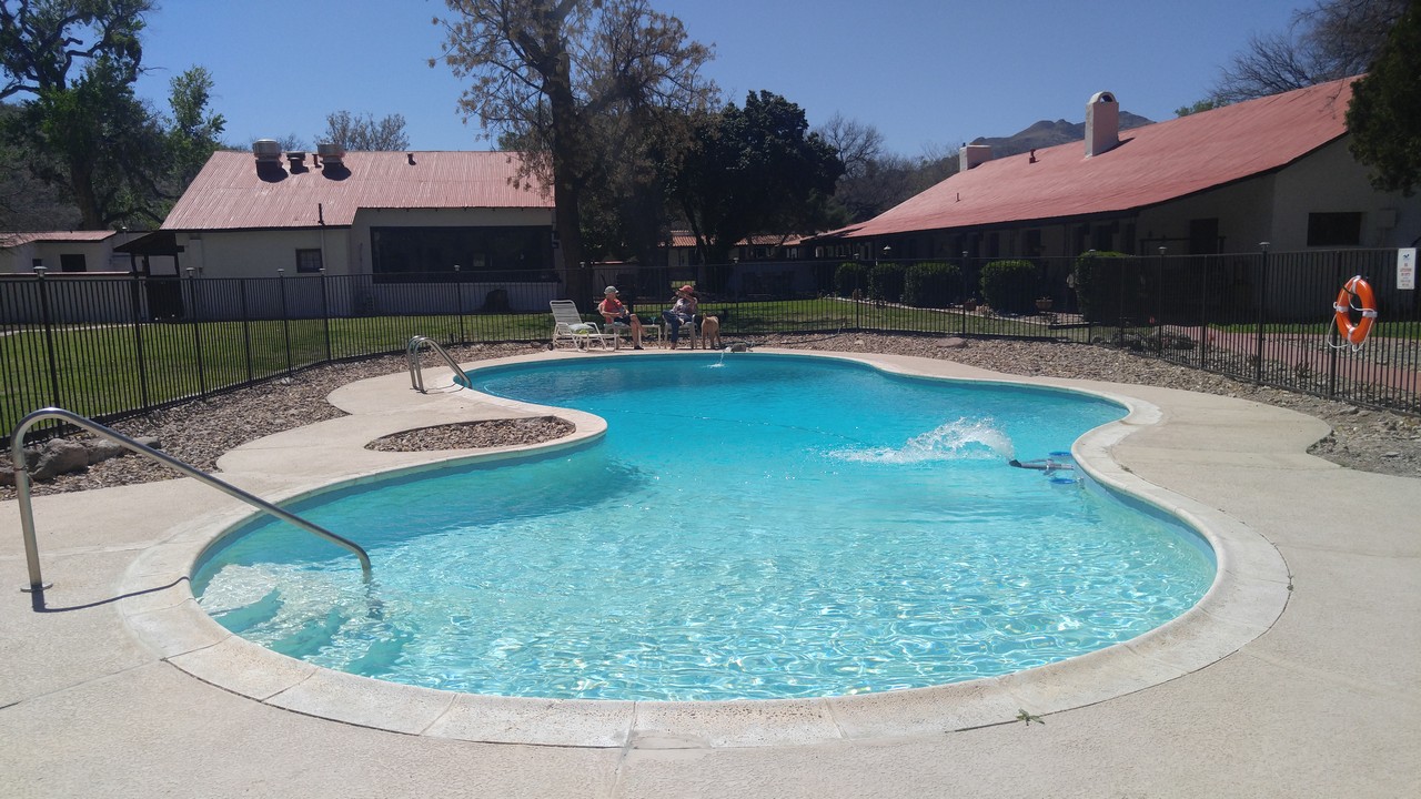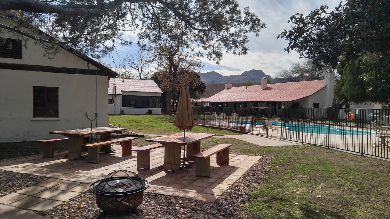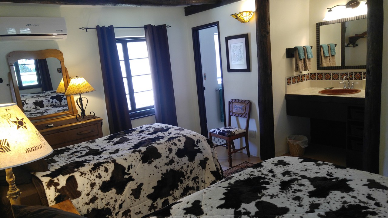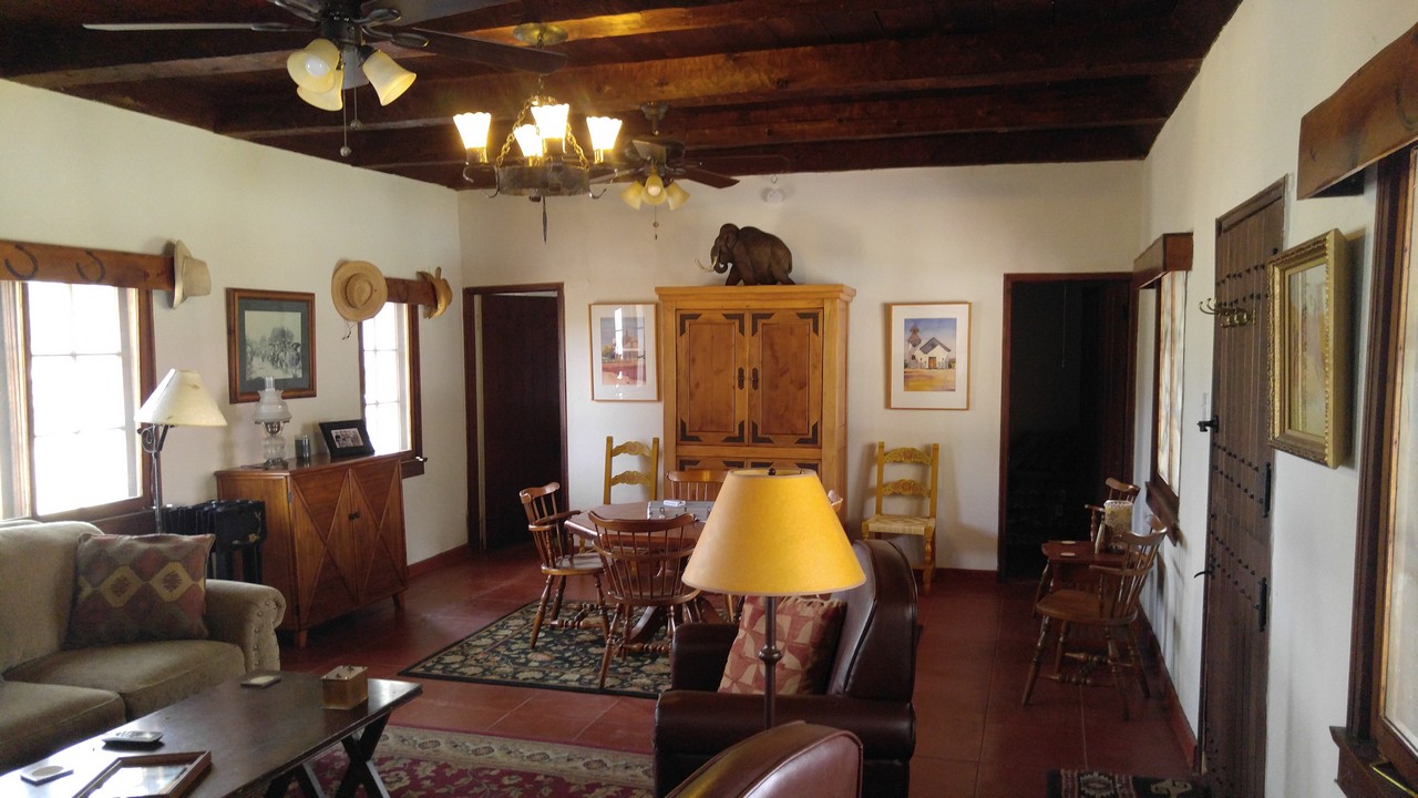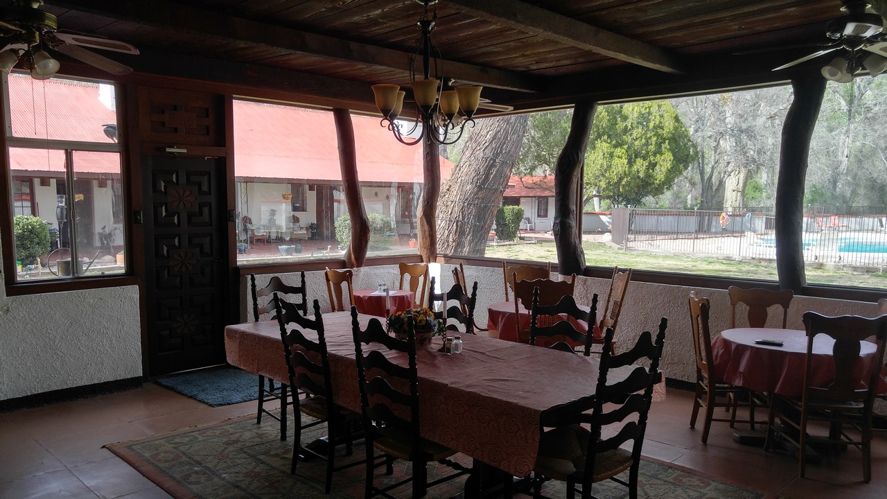 Amenities WIFI Air conditioning Blackout curtains Mini fridges Hair dryers Suitcase racks Swimming pool Barbecue area with gas grill and fire pit Self service Cantina Bar with bagged ice Lounge with board games Location Rancho Santa Cruz is located in a fertile green valley fed by the Santa Cruz River, which runs year round. The Ranch is at almost 4000 feet elevation, and its climate is substantially cooler and wetter than Tucson or Phoenix. The Ranch is surrounded by huge cottonwood trees. It is only a few miles to the famous artist community of Tubac, with its many shops, galleries, and restaurants. We are minutes away from one of the oldest Spanish missions in the US, and it is a short drive from here to Pena Blanca Lake or Patagonia Lake. There are many world class golf courses in the area. Dining Wisdom's Cafe, just 2 miles north, has great Mexican Cuisine. La Bocanita is a nice seafood restaurant in Rio Rico. Enjoy a beer at Abe's Old Tumacacori Bar. Garrett’s IGA Supermarket is 6 miles south. Birding Over 170 bird species have been observed at the Ranch. Visit our page on eBird. Local birding guides Felipe Guerrero and Richard Fray are very knowledgeable. Notes To see an aerial video of the Ranch, please click here. Please visit the article about the Ranch in Arizona Highways magazine (↗). We found a 1946 video of Rancho Santa Cruz. Our mailing address is "1910 E Frontage Rd #8086, Tumacacori, AZ 85640". Images